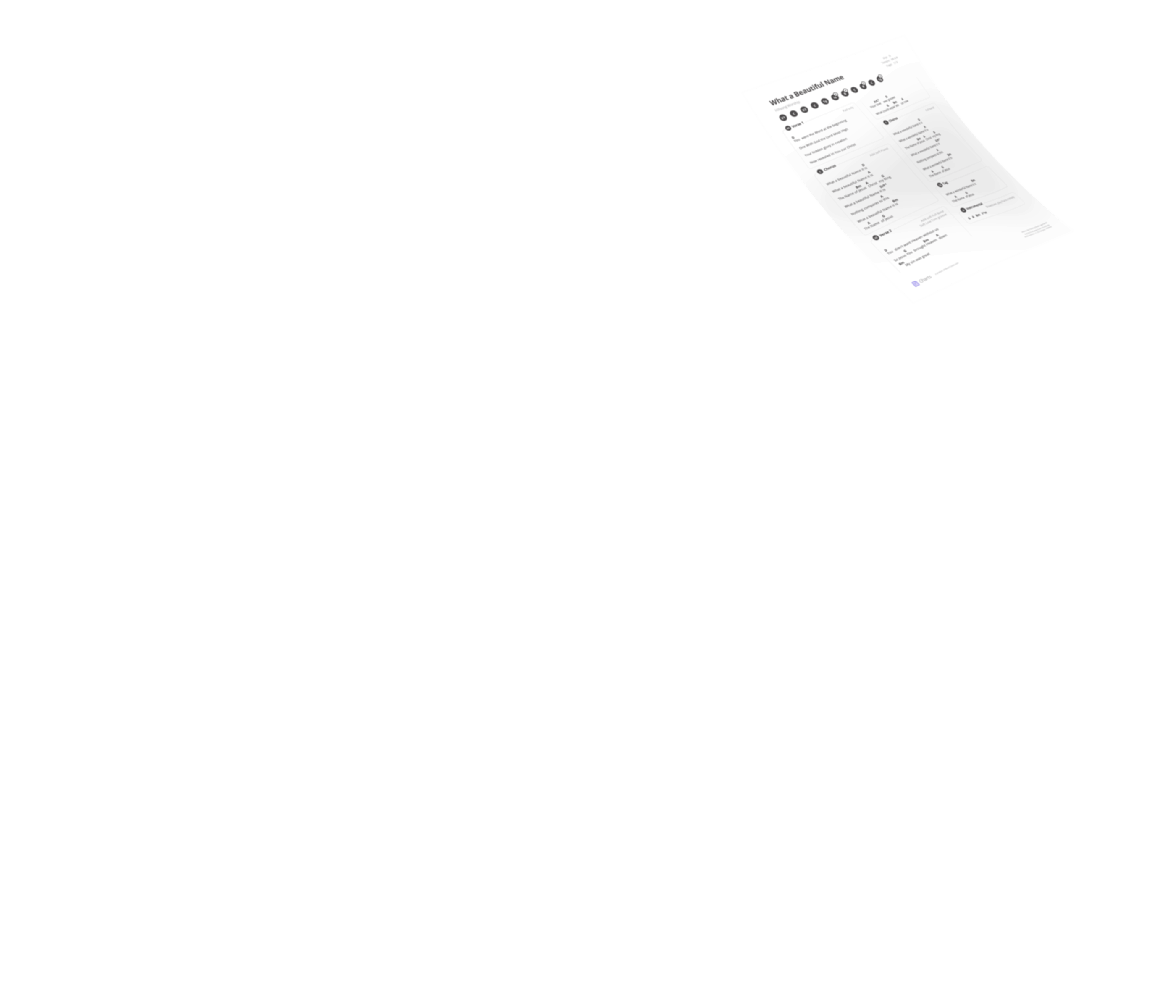 In ChartBuilder you can create a setlist, share it with your team, and allow your team members to customize the charts that are right for them. With ChartBuilder, you can show up to your service prepared, with or without a rehearsal.